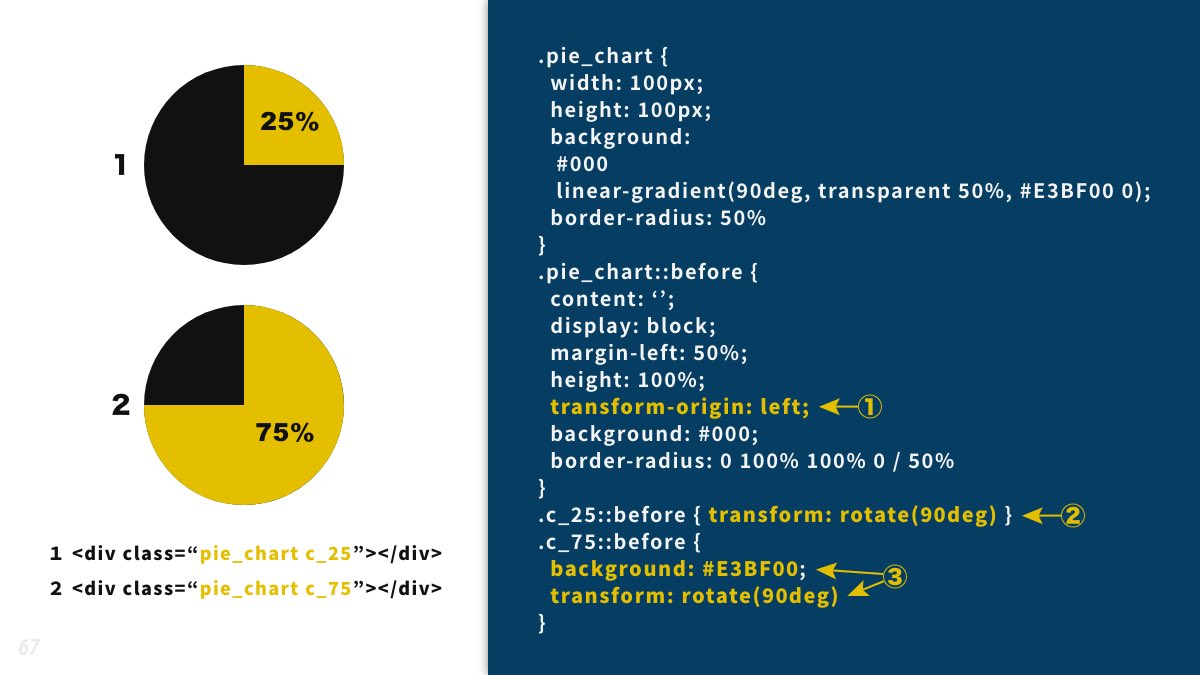 تويتر \ 小林 I Webデザイナー على تويتر: "CSSで円グラフを表現する - css 背景円